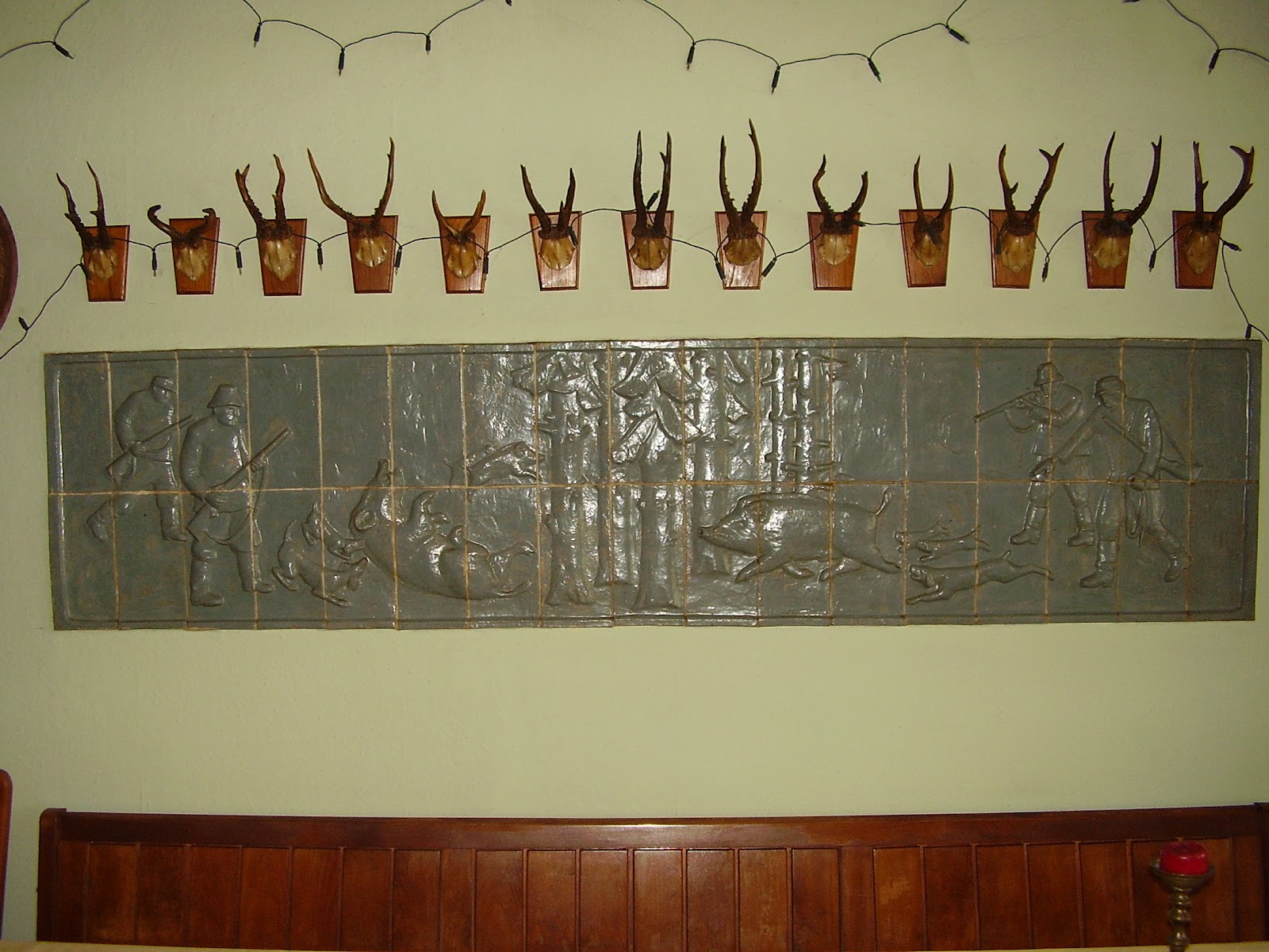1958 Wandbilder/Keramik "Jagd" in der Gaststätte Hubertusberg, Möllensdorfer Landstrasse, 6 km von Coswig/Anhalt